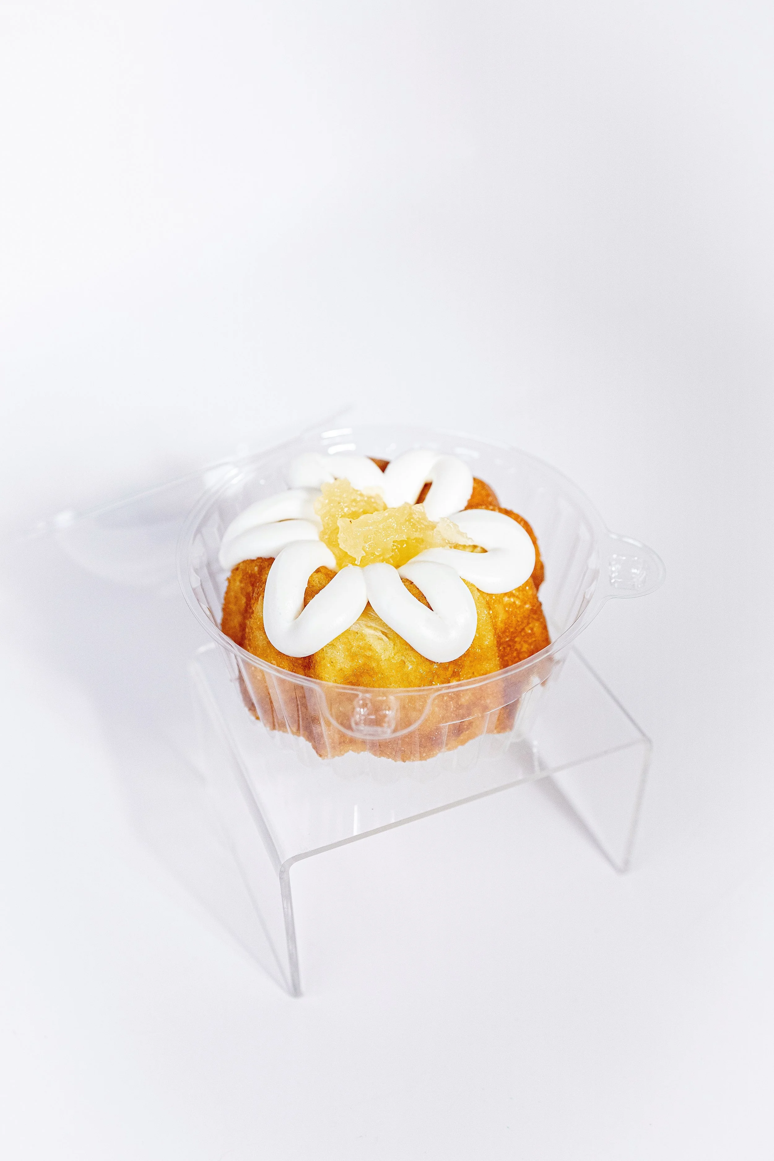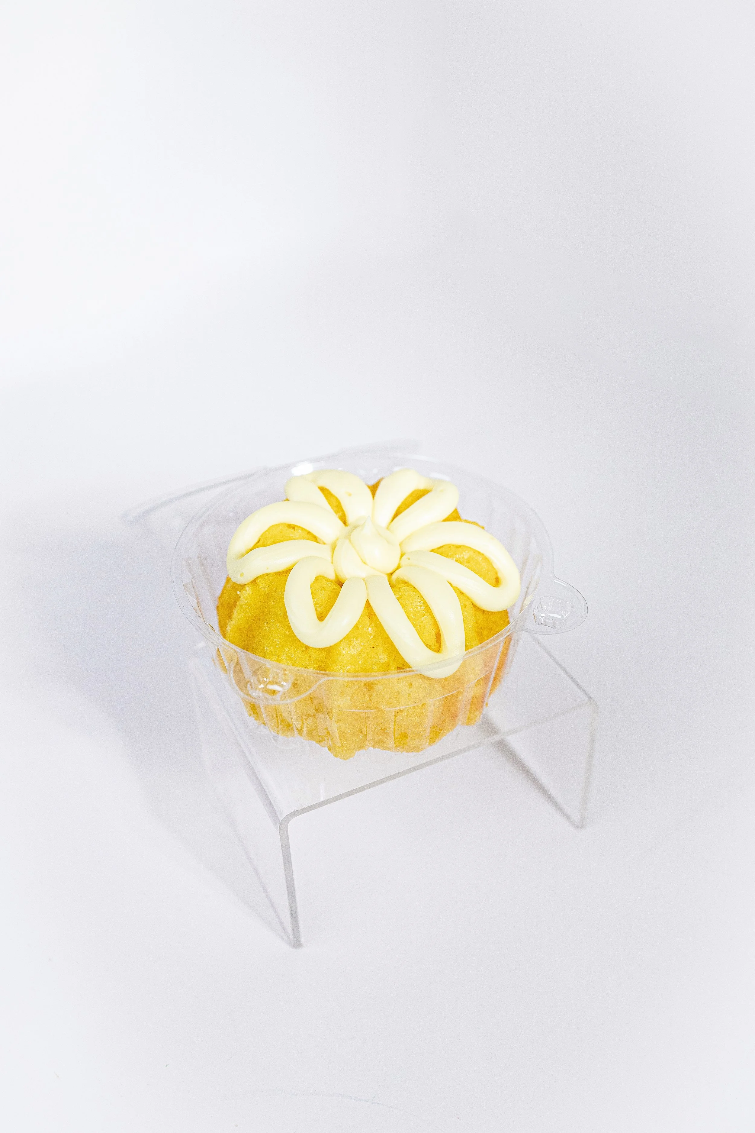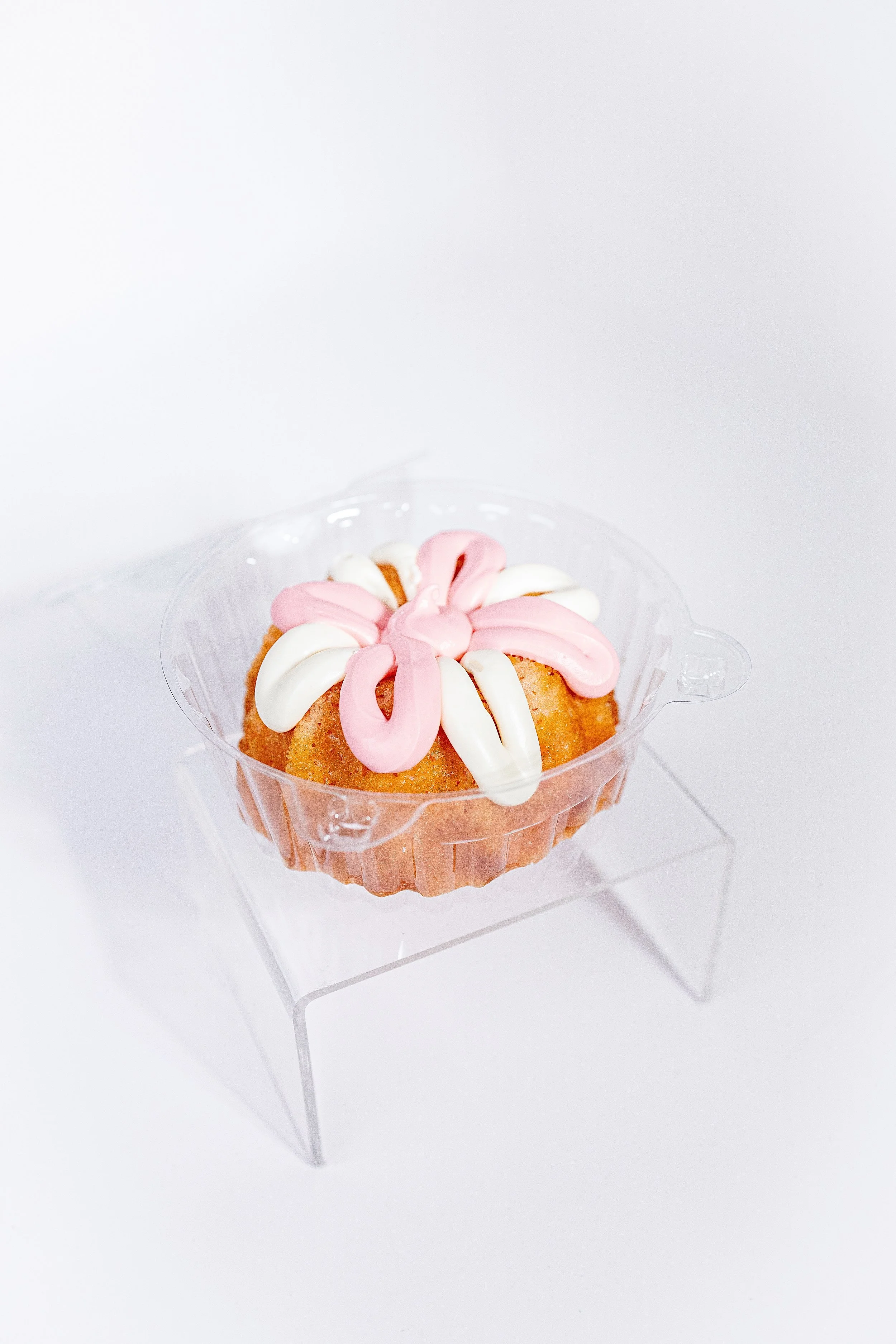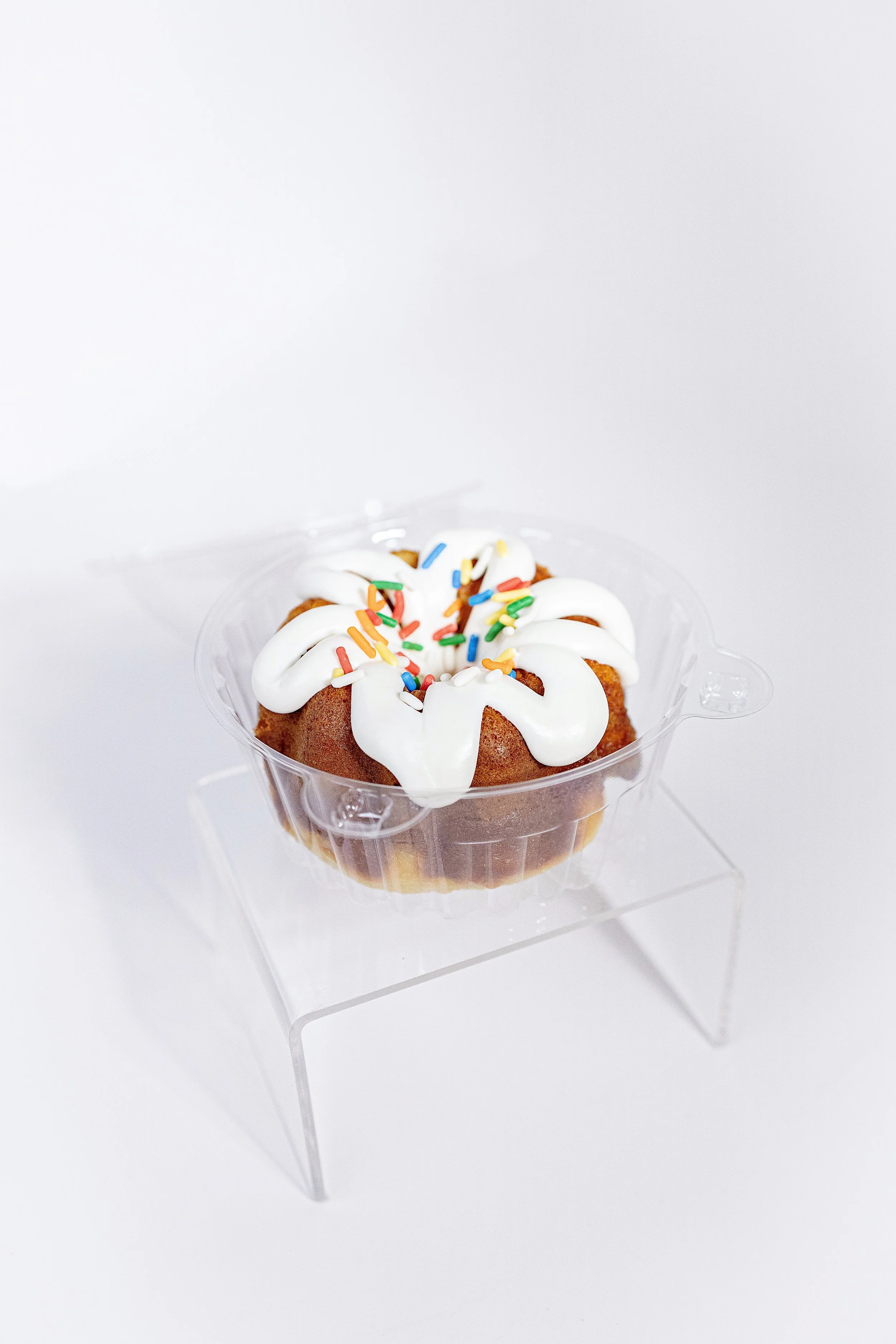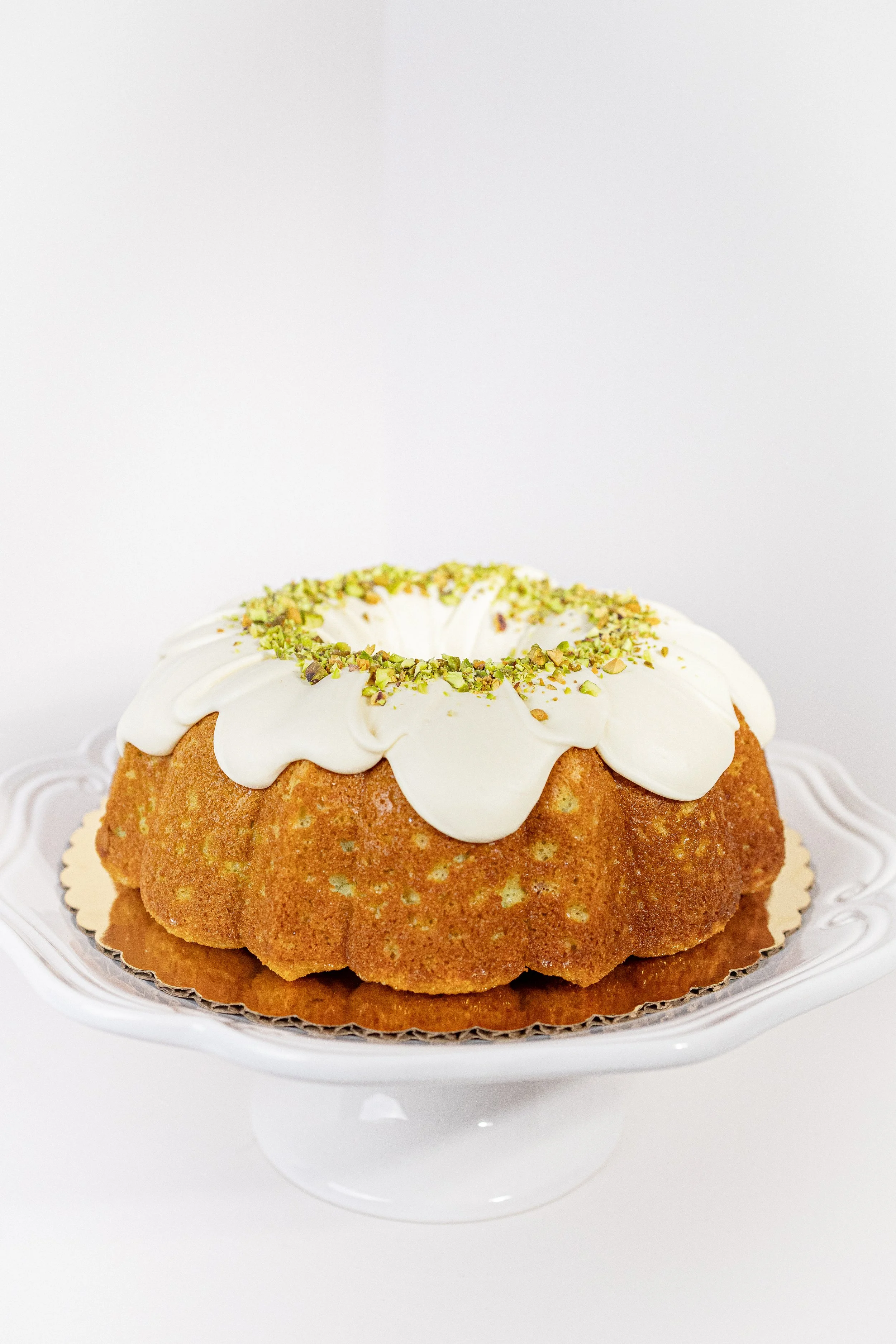 Spiced mini sweet potato cake with a crunchy pecan crust, finished with cream cheese icing for the perfect blend of smooth and nutty.