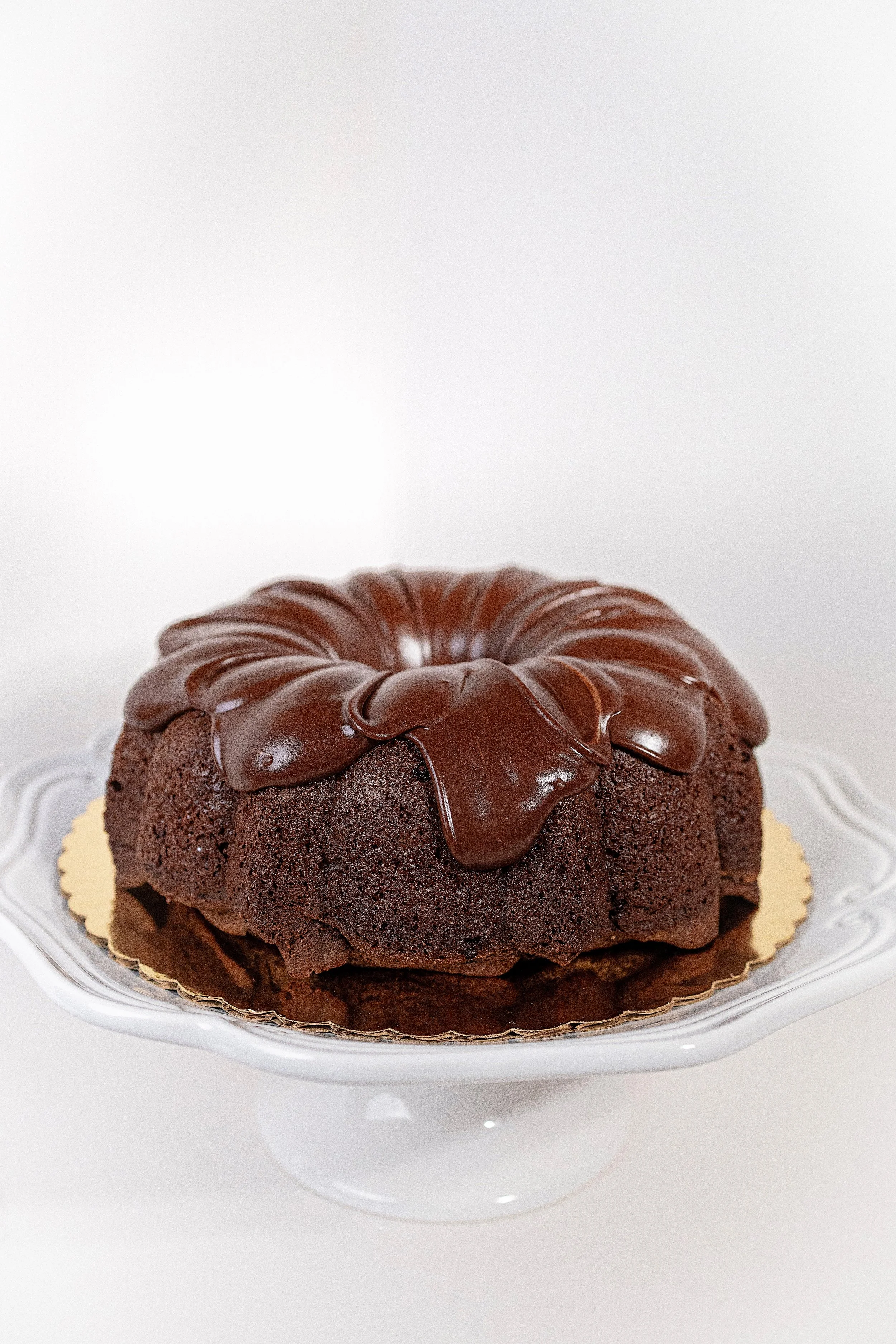 An irresistibly rich chocolate cake with hints of chocolate chips, drenched in a luscious, velvety chocolate icing drizzled with smooth chocolate icing