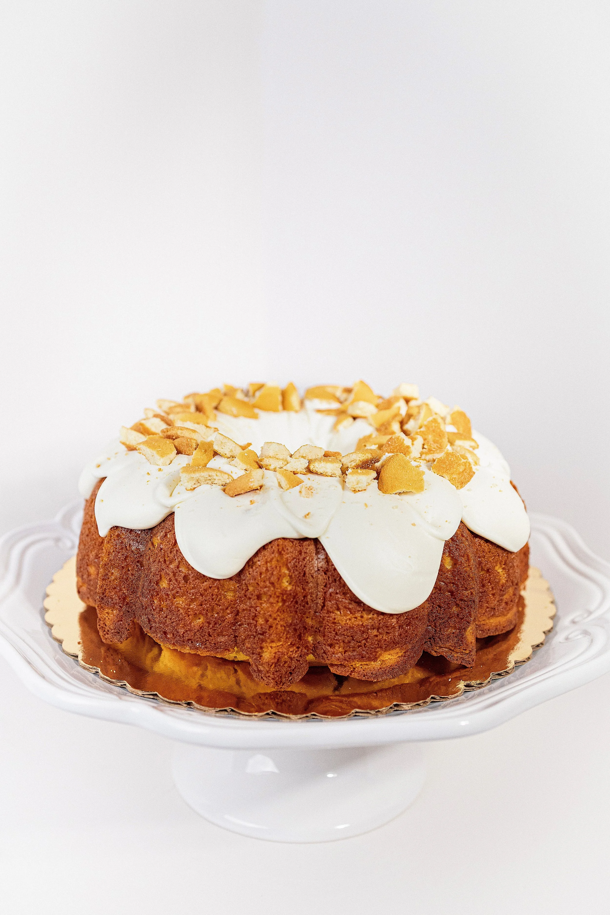 Moist banana cake bursting with rich, ripe flavor, drizzled in smooth vanilla icing and topped with Nilla wafers